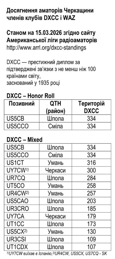 У цей же час роботу позивним UT5CZA з Уманської міської громади забезпечили Віктор Гаваза UR3CFC, Леонід Вовченко UR5CJN та Олександр Мельник US1CT (позивні вказано за алфавітом).