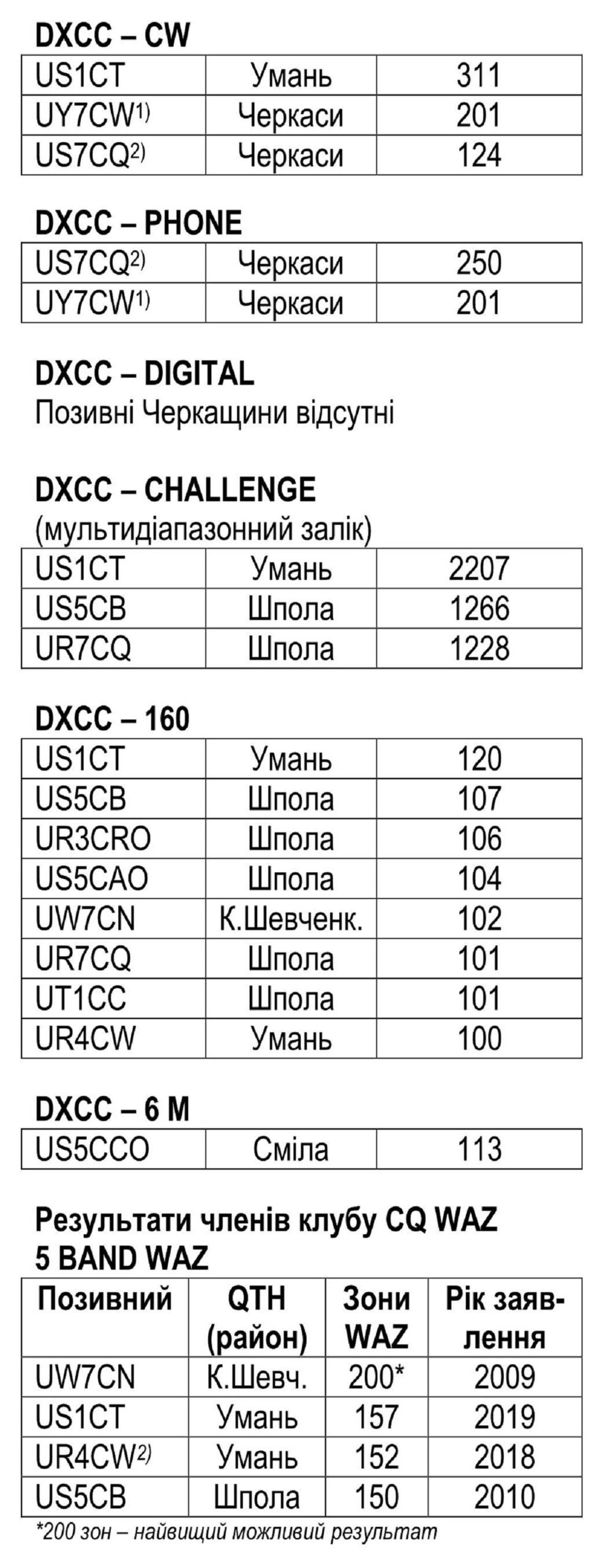 Аматори громад провели зв’язки з UT5CZA i UT5CZA/A: Уманської міської – 145, Паланської сільської – 19, Монастирищенської міської – 18, Христинівської міської – 17, Буцької селищної – 12, Жашківської міської – 4.