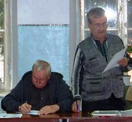 В суддівській колегії міських змагань з радіобагатоборства, Умань, 1975 р.: (зліва-направо): головний суддя Анатолій Цип’ящук та головний секретар Борис Гуцалюк.