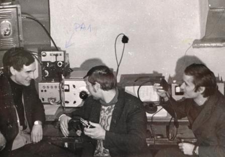 Після змагань у радіоклубі «Умань», UK5CAZ, 1977 р.: (зліва-направо) Олександр Мельник (ex UB5CAT), Борис Гуцалюк (ex UB5CAN) та Ян Осадченко (ex UB5CAO).