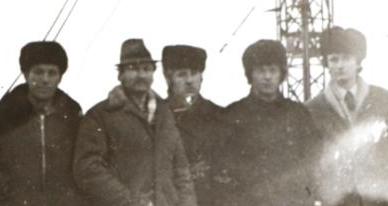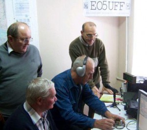 Під час випробування антени на UK5CAP (зліва-направо): Віктор Семенов UB5CDH, Борис Гуцалюк UB5CAN, Анатолій Зайцев RB5CEU, Олександр Войтик RB5CDC та Олександр Мельник UB5CAT.