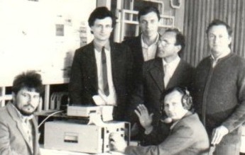Серед учасників та відвідувачів міської радіовиставки, 1989 р. (зліва-направо): стоять – Олександр Мельник RB5CT, Іван Кравченко, Йосип Трусиганов RB5CAQ і Борис Гуцалюк RB5CN; сидять – Григорій Штанько RB5CFB та Михайло Войнаровський ex RB5CD.
