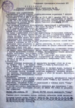 До 10-річного ювілею самодіяльного радіоклубу «Умань» 2-3 грудня 1983 р. проведено обласні змагання короткохвильовиків. Для цього Олександром Мельником (RB5CT) розроблено спеціальне Положення, яке затверджене президією Федерації радіоспорту Черкаської області.