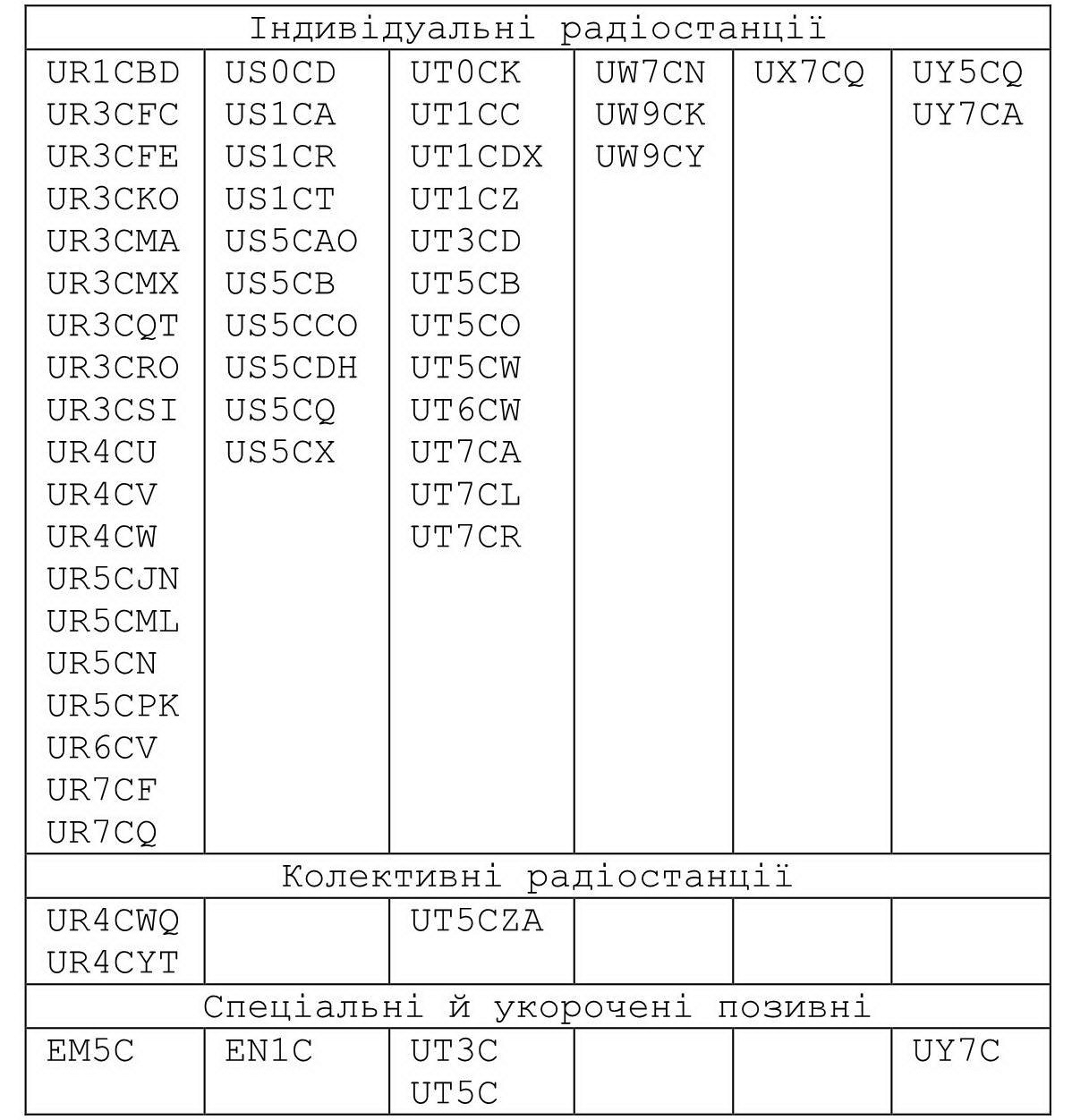 UR7CF +49, UR3CFC +25, UR4CW +12, UR5CPK +9, UT5CO +7, US5CX +5, US1CA +2